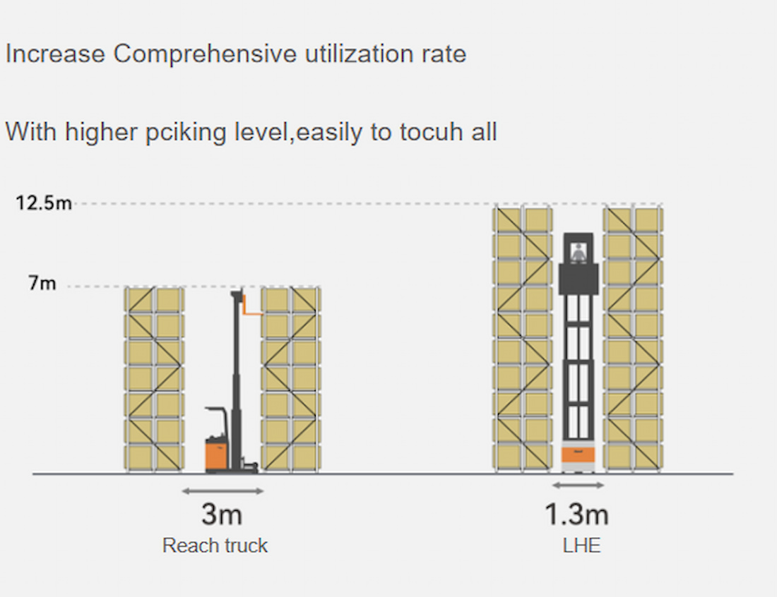 1.3 m Working aisle, 12.5m lift height