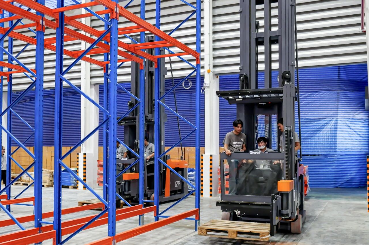 1)In response to the client's needs, Zowell planned a narrow aisle racking solution with a depth of over 30m and an aisle width of 1.8m for the new warehouse, and delivered two man-up three-way forklifts with a maximum load capacity of 1.6 tons and a maximum lifting height of 13.5 meters, which can easily achieve accurate storage and retrieval of high-level goods and improve the space utilization of the new warehouse!