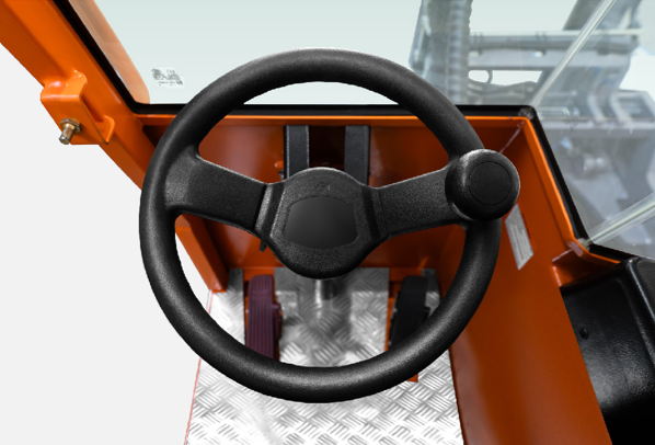 The load capacity is 5t and the lifting height is 3-10m.with 3 kinds of driving model: forward/backward,driving sideways and 360°steering in place.