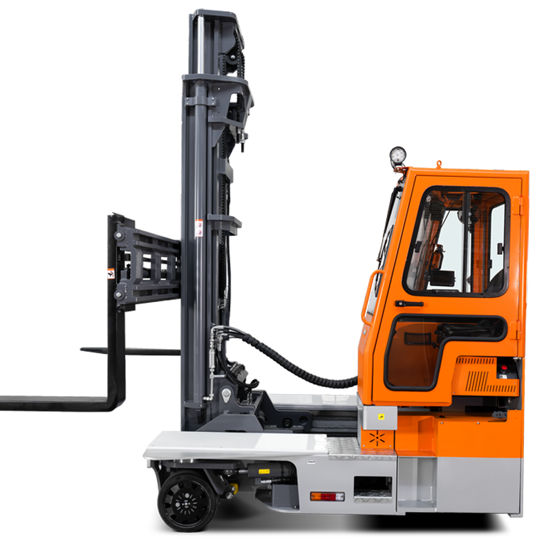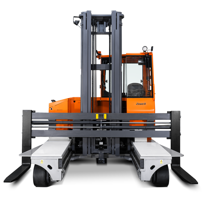 Zowell WSHM series is a multi-directional electric forklift truck suitable for stacking and handling goods with large tonnage, large volume and long length in narrow passages, with a maximum load of 5000kg and a lifting height of 3m-10m. It has three driving modes: straight, sideways and in-situ rotation. This series of vehicles integrates multi-directional patented technology, and its hydraulic synchronous cross-control steering technology+all-drive three-fulcrum body mechanism can meet a variety of complex working conditions indoors and outdoors. Suitable for pipes, plates, furniture, mattresses, cloth rolls, glass, molds, cabinets, boxes, elevators and other industries.